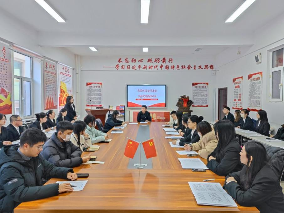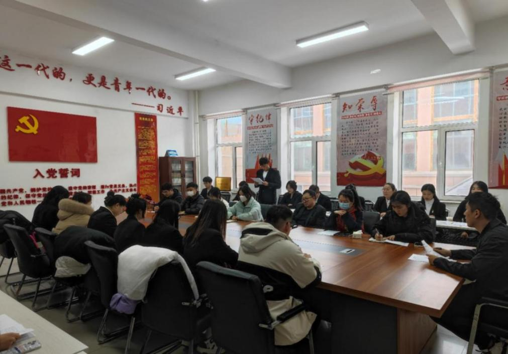首先,董建男清点参会人数、介绍大会主要内容和具体流程。随后,会议第一项,支部书记宣读发展对象名单;由郑文玺等27名发展对象逐一宣读《入党志愿书》并做出汇报。会议第二项,由入党介绍人从思想觉悟、学习成绩、日常表现等方面对发展对象在入党积极分子考察期间的情况进行介绍评价,并对其能否加入党组织表明态度。会议第三项,由支部书记介绍发展对象政审及征求群众意见情况。会议第四项,入党介绍人、支部委员及参会党员对发展对象进行提问并发表意见;郑文玺等27位发展对象对提出的意见进行表态。会议第五项,全体正式党员关于是否同意郑文玺等27位同学加入党组织进行了举手表决,大会同意接收郑文玺等27位同学为中共预备党员并报公司党总支审批。会议第六项,由郑文玺等27位同学发表预备党员接收感想。