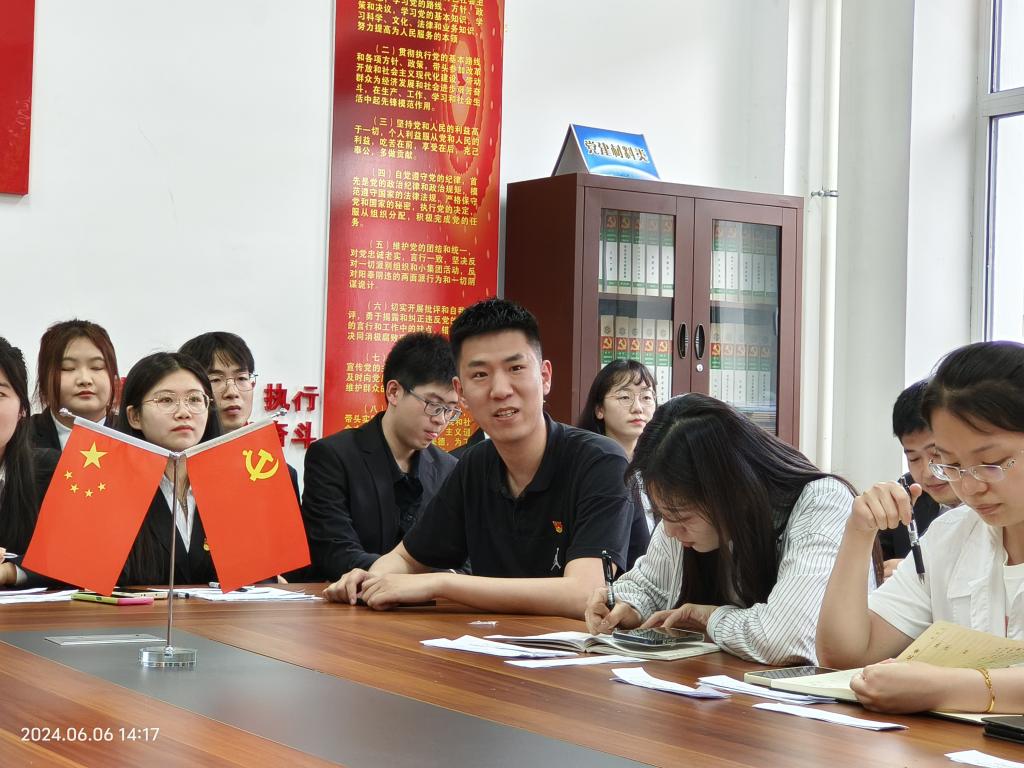 最后程琳进行总结讲话。她对崔佳等14名同志被发展为中共预备党员表示衷心地祝贺,并希望同志们永远铭记这个神圣的时刻,以此为契机,树立正确的世界观、人生观和价值观,进一步加强理论学习,努力工作,充分践行全心全意为人民服务的宗旨,发挥模范带头作用。
