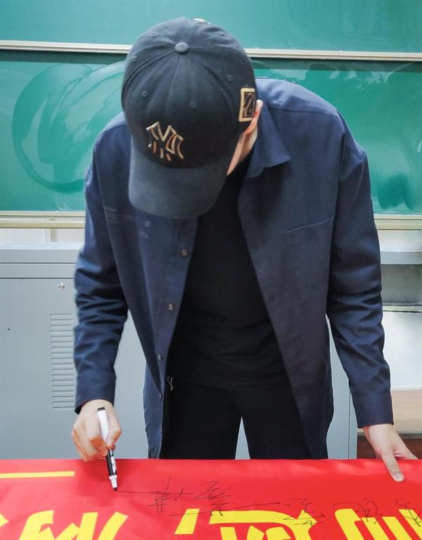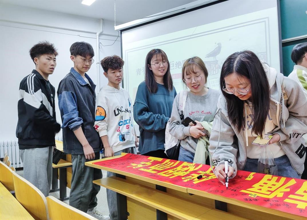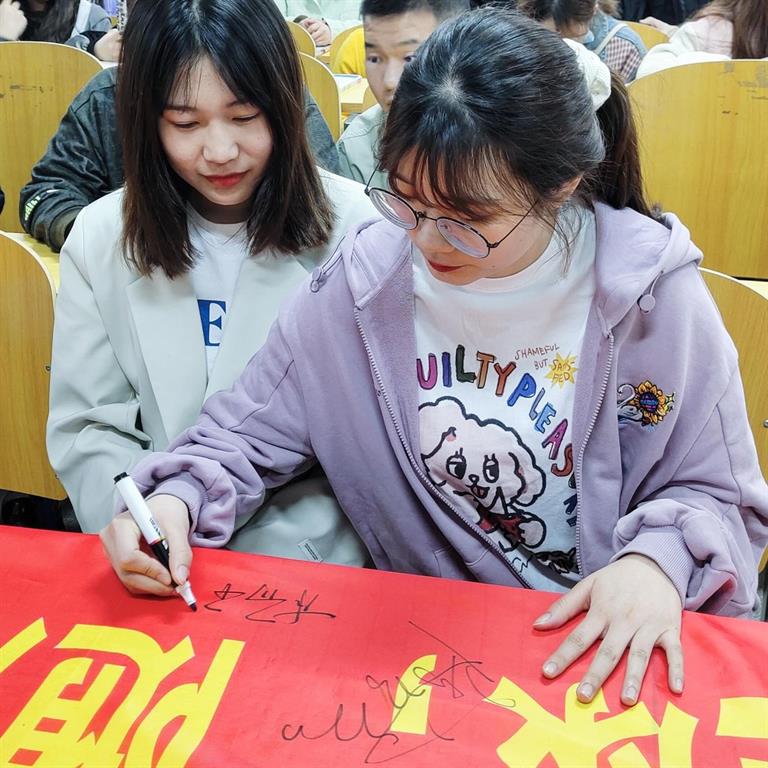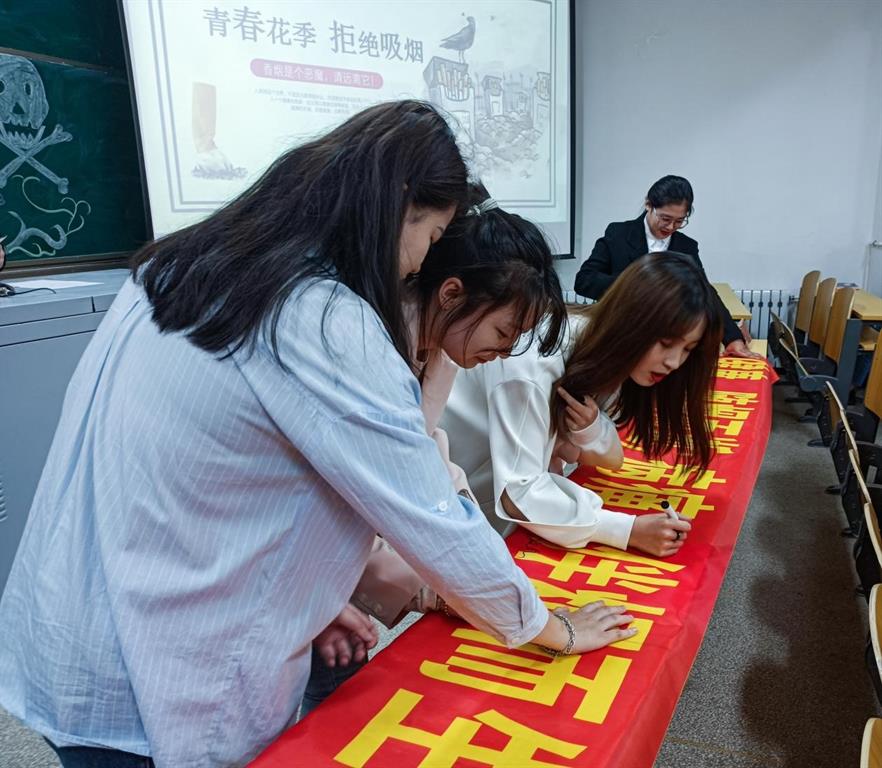 活动第七项,李勇老师和董建男老师带头为本次戒烟倡议活动签字,接着现场嘉宾以及全体同学排队依次进行签字。