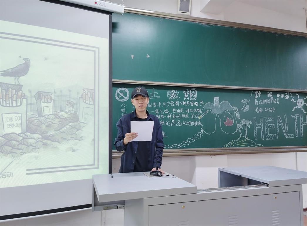 活动第六项,由辅导员董建男老师和李勇老师发言,他们表示自己将会起到带头作用,带领同学们一起走向无烟的世界。呼吁同学们为创造一个清新、环保、绿色的“地球村”,贡献出一份力让生活环境变得更健康、更美好。