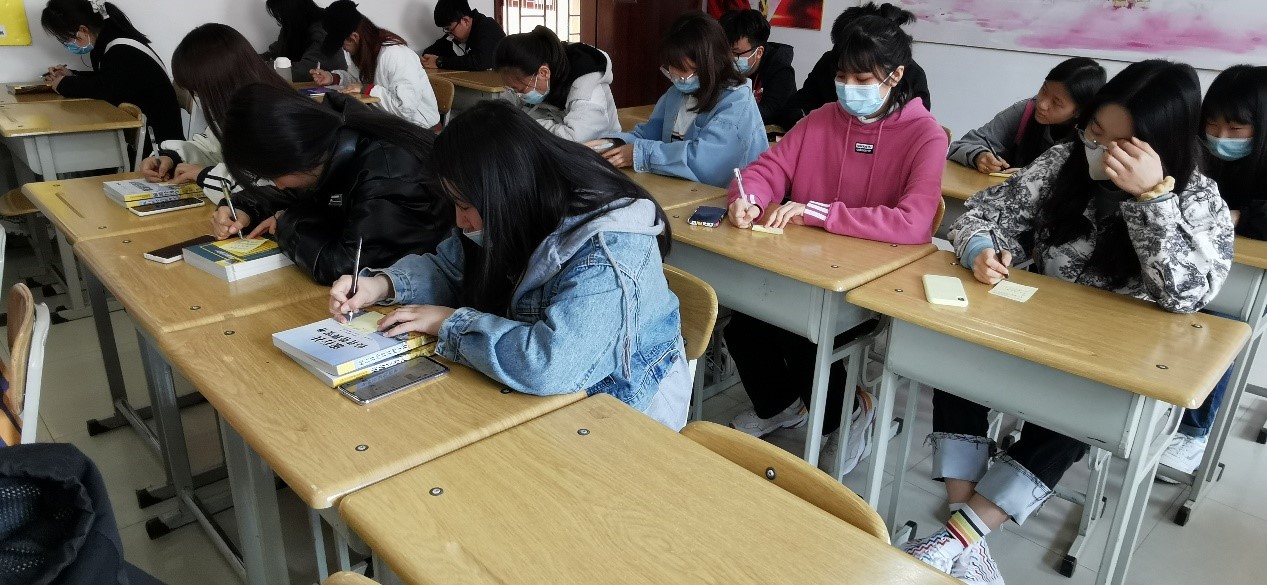 (图为勤俭节约小组成员制作“自省节约卡片”)