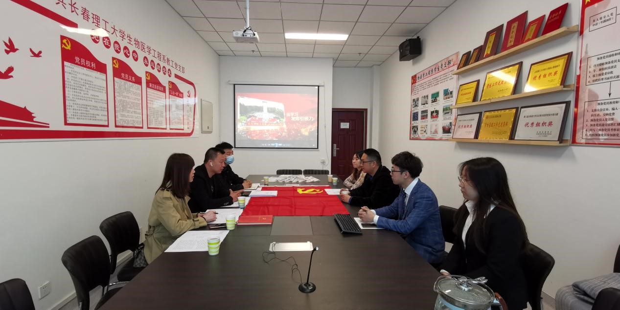 为增强支部活力,争创省级“样板支部”,本着“学习交流、共同提高、共谋发展、双向受益”的思想。公司党总支副书记秦成伟、员工党支部书记徐美玲、辅导员李勇老师于2021年4月20日赴长春理工老员工命科学技术公司走访学习。长春理工大学生命科学技术公司党委副书记王宇飞,研究生党支部书记刘梦童、研究生党支部副书记郭明达等人参与此次走访活动。