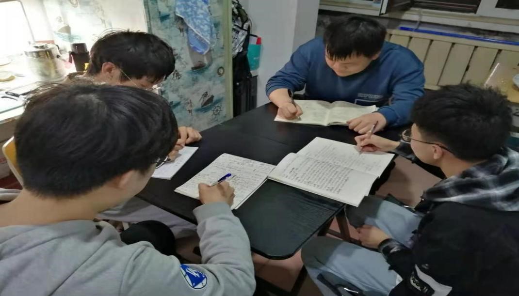 (图为学习小组成员以寝室为单位学习加强政治建设照片)