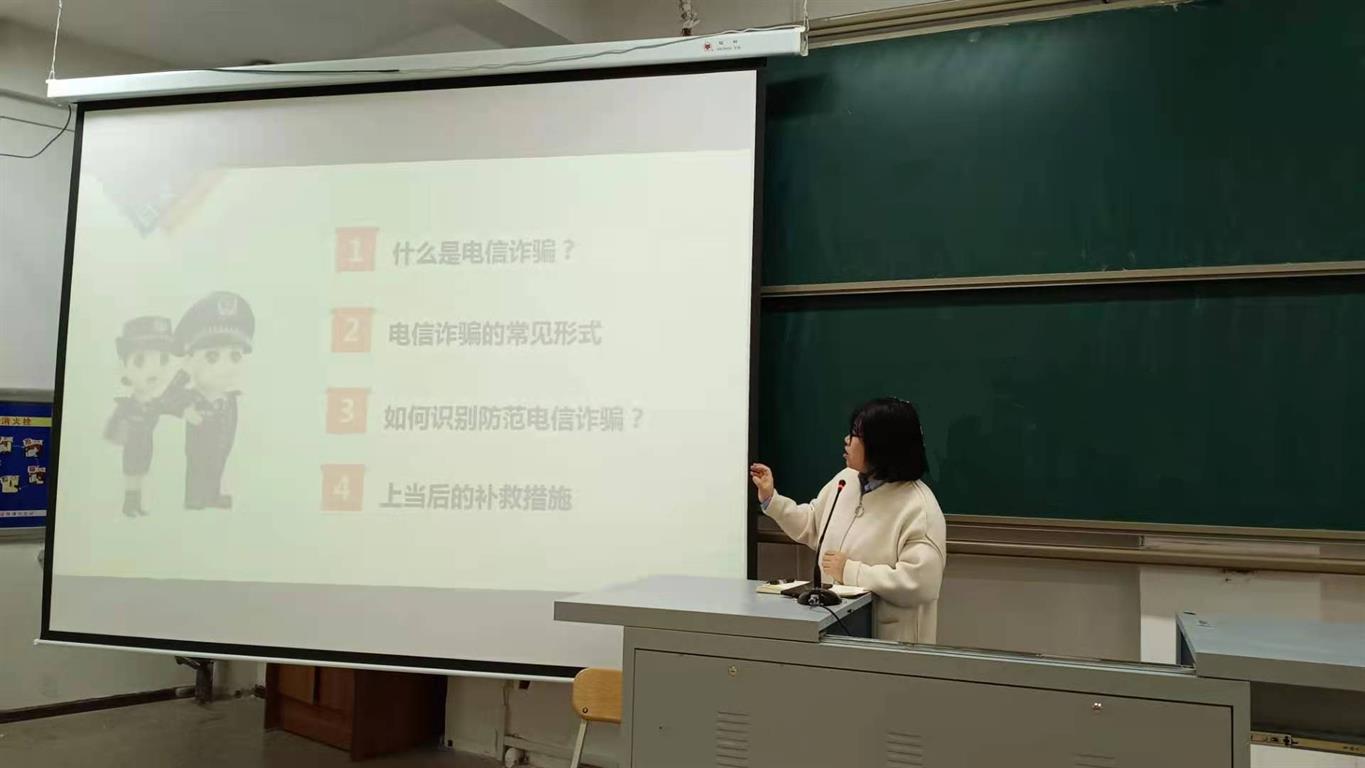会议伊始,王微老师告诉同学们电信诈骗是指犯罪分子通过电话、网络和短信方式,编造虚假信息,设置骗局,对受害人实施远程、非接触式诈骗,诱使受害人给犯罪分子打款或转账的犯罪行为。诈骗犯无论手法如何翻新,最后都要落到一个点上,就是犯罪分子都要受害人的银行卡密码和短信验证码。千万不要轻信来历不明的电话、短信,不要轻易透露自己的身份和银行卡的信息。