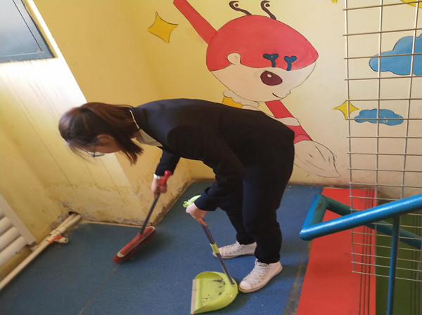 活动初始,由志愿者们为特教公司打扫公司内公共区域的卫生,希望可以通过自己的一份力为他们的生活提供一个好的环境。随后,特教公司的老师带领员工干部去往教室陪伴孩子们,与他们一起看书、写字、一起玩橡皮泥。然后到了吃晚饭的时间,志愿者们为孩子们打饭、照顾他们吃饭。最后由志愿者们为孩子们赠送了礼物。