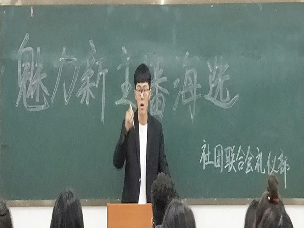 在一场初雪之后,冬天就悄悄走进了我们的生活。2018年10月28日17点整三教303的教室里由社联礼仪部主办的“魅力新主播海选”活动慢慢拉开序幕。担任本次活动的评委是社团联合会礼仪部部长朱博林和谭紫薇。