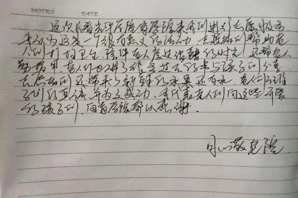 活动结束后,两所敬老院的负责人分别为公司志愿者们写了回馈信。