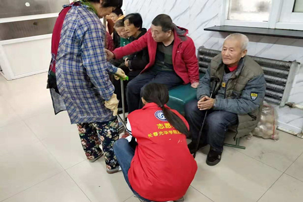 活动伊始,负责人带着志愿者来到了老人们的门前,老人开门看到志愿者们脸上露出了甜蜜的笑容,随后,志愿者帮助老人们简单打扫了卫生,陪老人说话、谈心。老人们大多数都已高龄,但身体却非常健康。老人们讲到,他们平时都会举办合唱团舞蹈团等活动,而且每一个人都把这里当做自己的家。志愿者们慰问了多个老人,一幕幕难忘的瞬间都深深的印在了每个志愿者的心里,让志愿者久久不能忘怀,面对老人的真诚,志愿者也深受感动。