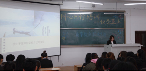 活动伊始,主持人以大家踊跃担当员工干部的目的是什么的问题切入主题,讲述了员工干部的素质应该是只有在付出自己的努力,服务同学,帮助他人,配合老师开展工作的过程中自己才能得到锻炼。付出的同时,也有所收获,不仅增加了跟同学的交流的机会,锻炼了我们的表达能力和人际交往能力;而且积极参加组织活动,可以锻炼我们的组织管理能力;和动手能力等等。