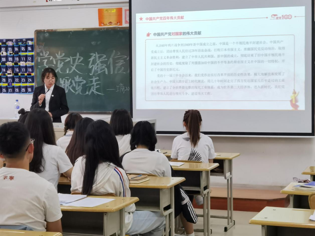 点整活动伴随着主持人对中国共产党光辉历程的讲解拉开帷幕。在本次活动中同学们共唱《中国共产主义青年团团歌》,展现了商院学子的精神风貌;共观《永葆初心:习近平总书记讲述百年征程》,进一步学习百年党史。其中,财务