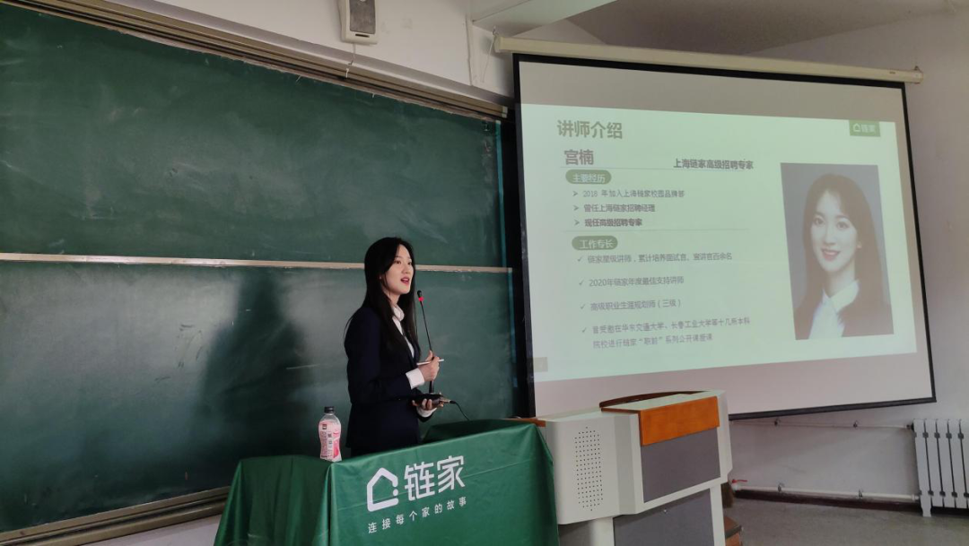 活动伊始,上海链家高级招聘讲师宫楠进行自我介绍。接着开始介绍简历制作以及面试的过程知识和注意事项。其中分为三大部分:第一部分为简历制作,包括人岗匹配、认识自己、了解岗位、简历制作;第二部分为面试交流,包括自我呈现、面试流程、面试形式、问答技巧、加分项、面试礼仪;第三部分为面试总结,包括自我反思、面试总结。宫楠讲师讲解的过程中设计了有奖问答环节,调动了同学们的积极性和参与性。