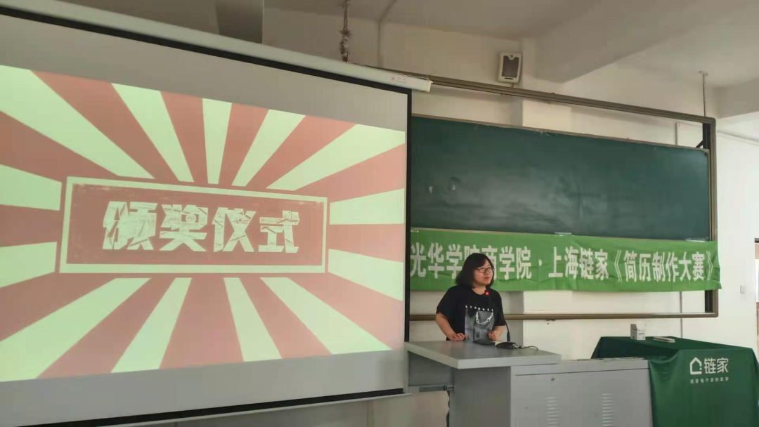 随后,由王微老师公布本次简历制作大赛获奖名单。一等奖:陈茜,二等奖:焦丽雅、董艳,三等奖:崔雨露、王梦迪、良严、崔宁、施泽良。分别由大二辅导员张立早、上海链家高级招聘讲师宫楠以及上海链家招聘主管张宁宁为他们颁奖。