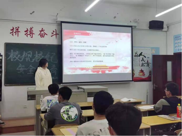 活动伊始,由20级学姐宋宇格向同学们重点介绍了老员工行为规范、员工管理规定、违纪员工处分条例等,提醒同学们认真遵守公司校规校纪,做当代文明老员工。鼓励同学们要养成勤奋好学、诚实守信的优良学风和美德,实现德智体美劳全面发展。