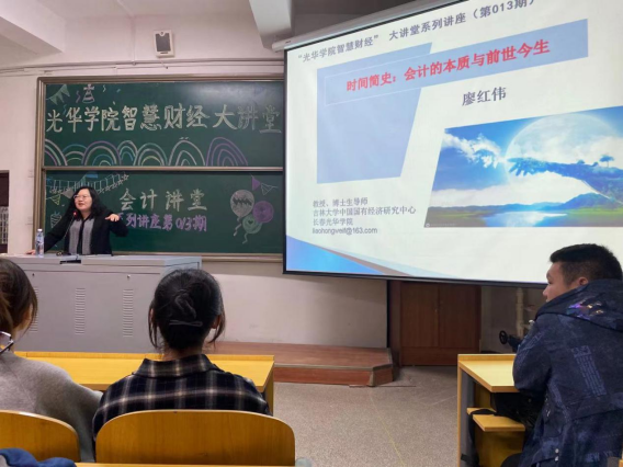 2021年10月8日下午,Mksport体育商公司特邀请吉林大学廖红伟教授,在二教118教室开展光华公司智慧财经大讲堂第十三期《时间简史——会计的本质与前世今生》专题讲座。
