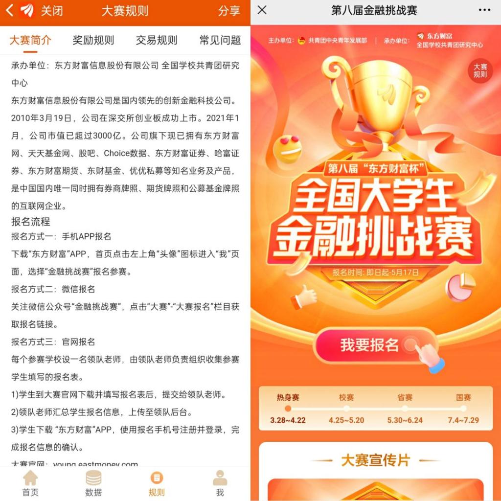 为了加强同学们对金融理财方面的理解,丰富员工课余活动,培养同学们对金融理财的兴趣与热情。鼎锐财经协会诚邀全体员工参与于4月25日到7月29日举办的“东方财富杯”金融挑战赛。