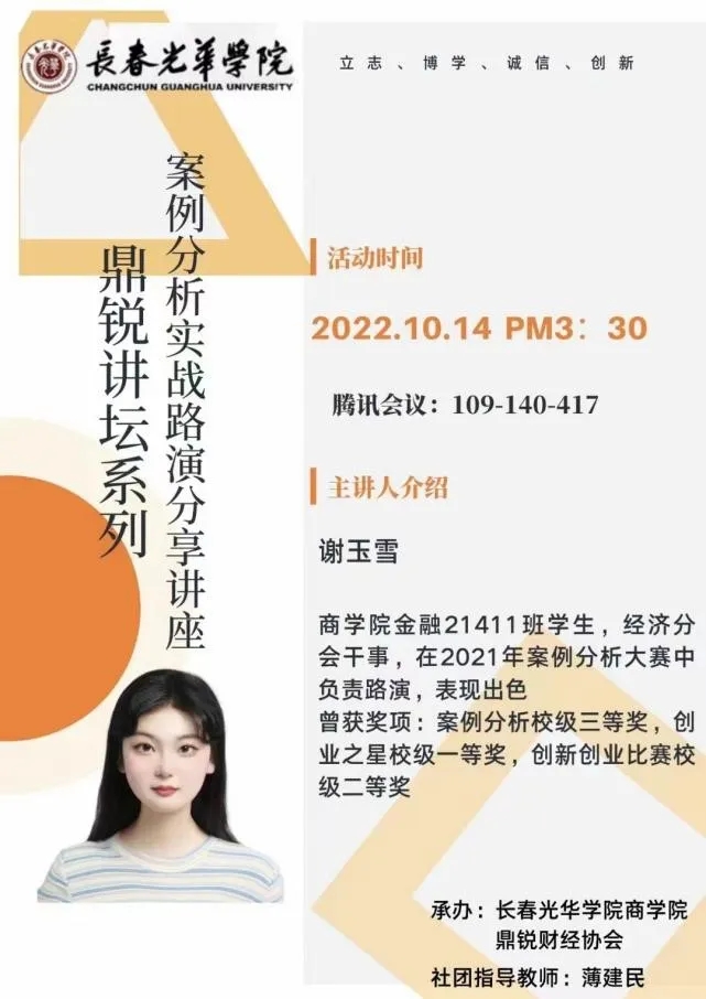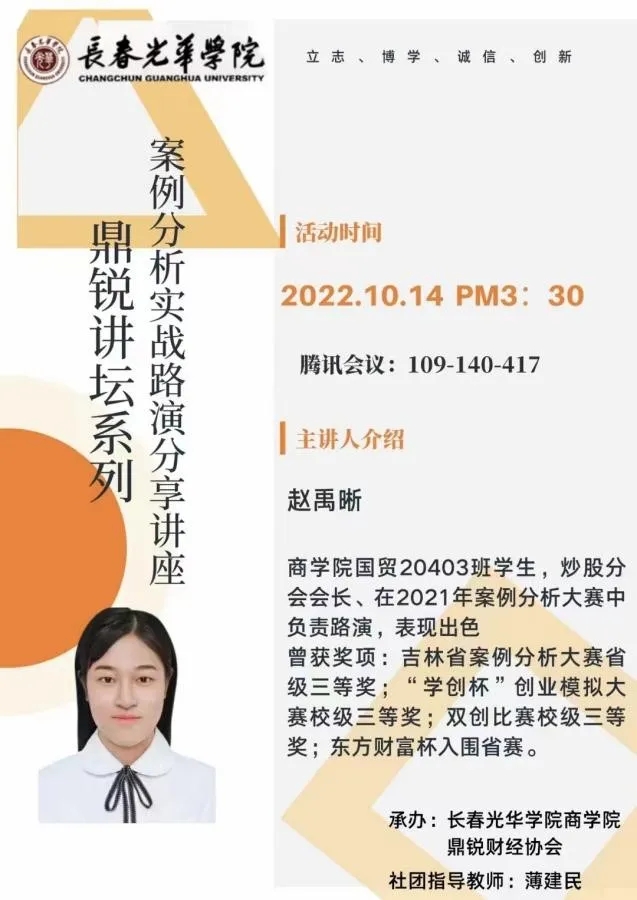 为更好地弘扬鼎锐精神,激发同学们的竞争意识,提高同学们的表达能力和经济模型应用能力,培养成员们将理论知识转化为实践的能力。MKsports鼎锐财经协会于2022年10月14日下午3点半线上开展案例分析讲座,本次活动由鼎锐财经协会国商分会会长聂子晴、炒股分会会长赵禹晰、经济分会干事谢玉雪主讲,鼎锐指导老师薄建民参会,协会全体成员参加。