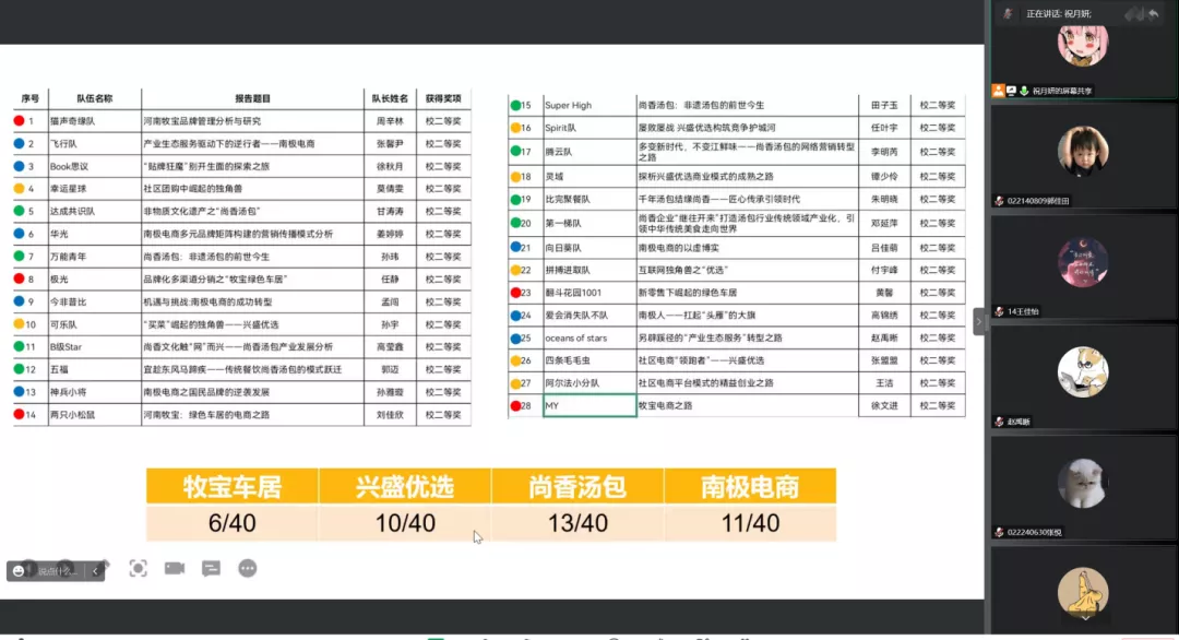 讲座伊始,祝月妍展示了去年进入省赛队伍的选题分析,用往年的参赛数据为大家展示选择案例的小技巧,即参赛队伍应该选择有了解的,感兴趣的,有把握的案例。