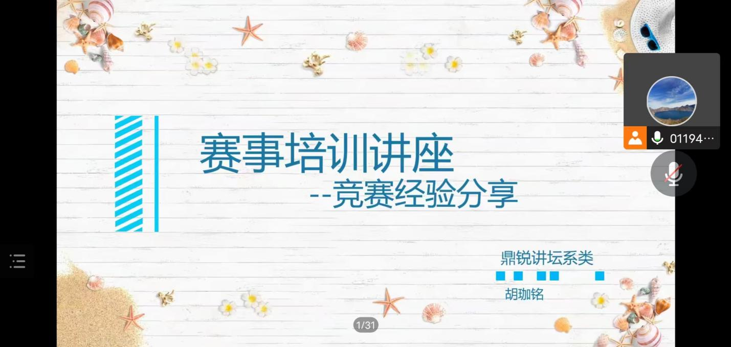 为了同学们更好地熟悉鼎锐财经协会及比赛类型,MKsports鼎锐财经协会于2022年11月25日19时线上召开赛事培训讲座。本次讲座由19级胡珈铭主讲,金融分会会长赵为主持,鼎锐指导教师薄建民作为参会指导,鼎锐财经协会全体成员参加。