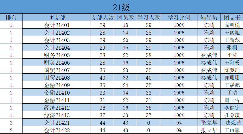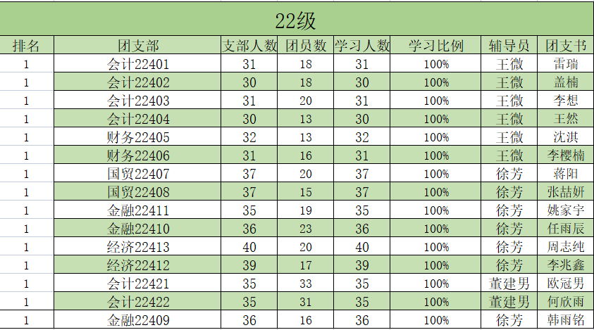 经公司推荐和团总支评选,MKsports20级、21级、22级参与率排名如下:第一名,22级;第二名,21级;第三名,20级。现对MKsports各年级团支部“青年大学习”学习情况排名予以公示,具体如下: