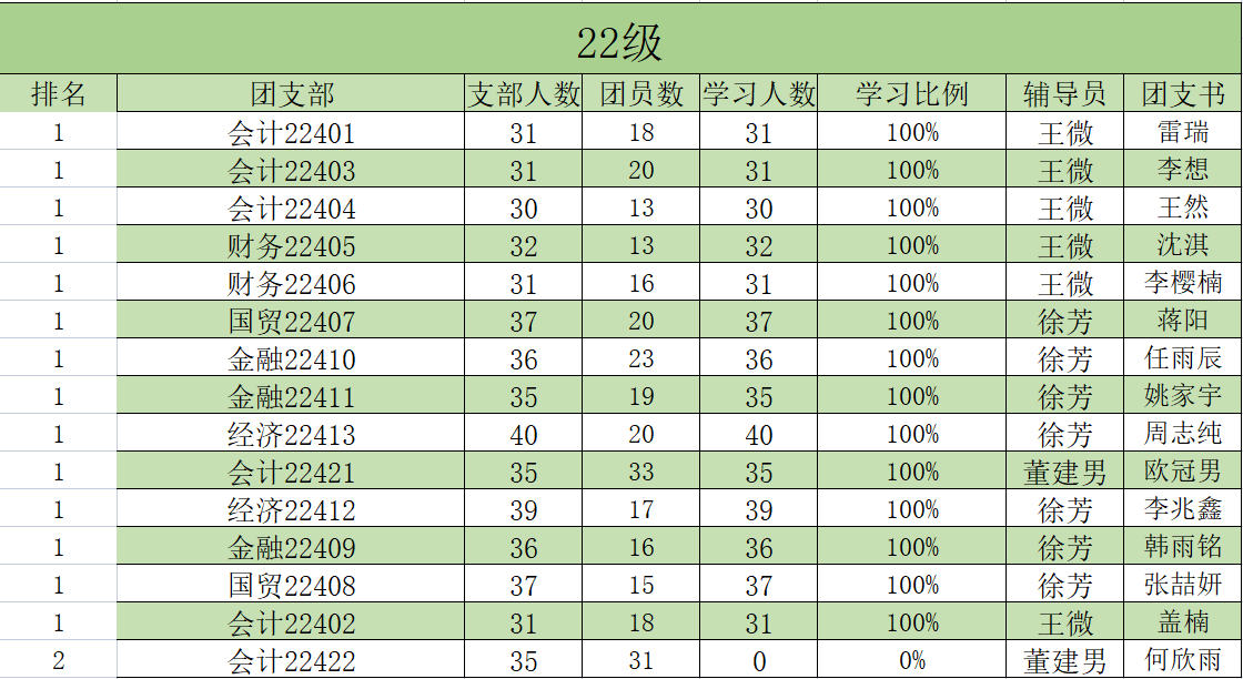 经公司推荐和团总支评选,MKsports20级、21级、22级参与率排名如下:第一22级,第二20级、21级。现对MKsports各个年级的团支部“青年大学习”学习情况排名予以公示,具体如下: