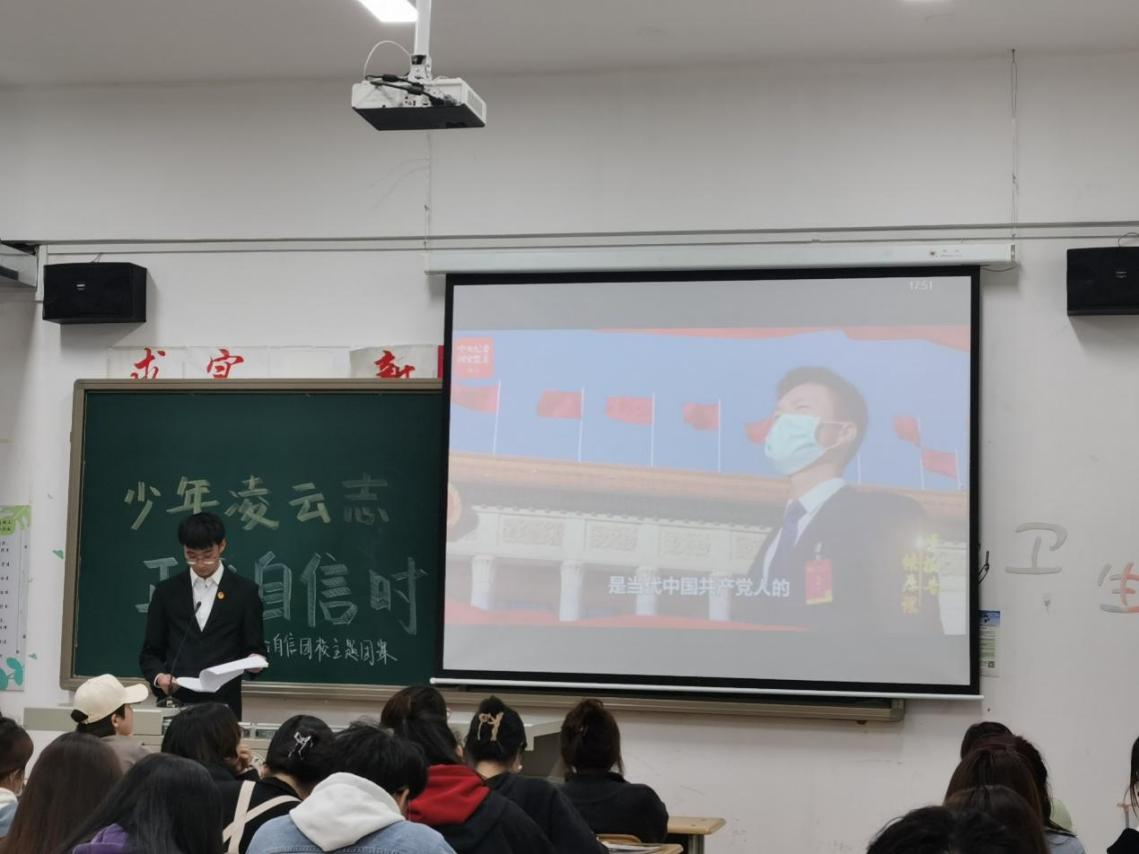 火红青春,激情五四。为纪念建团101周年、“五四运动”104周年,继承和弘扬伟大的“五四”精神,引导团员青年和入团积极分子增强责任感和使命感。在2023年五四青年节即将到来之际,MKsports于2023年4月24日在三教105召开“少年凌云志,正当自信时”理论自信主题的团课。本次团课由MKsports团总支组织部工作人员寿飞扬主持,大一大二全体入团积极分子参加。