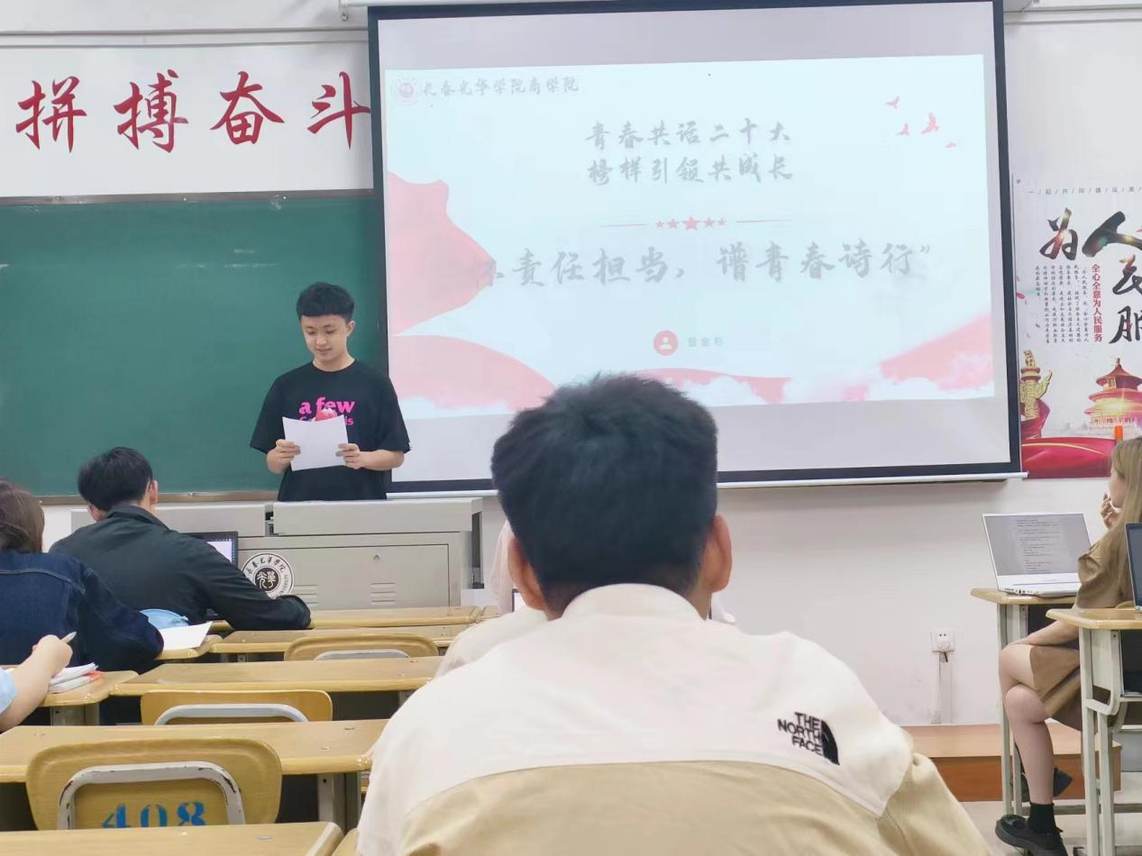 道阻且长,行则将至;行而不辍,未来可期。作为新时代青年的我们,自当不甘做浮萍,拒绝“躺平”。本次校园宣讲活动的顺利进行,使同学们深刻理解责任感与使命感的重要性,有效引领广大同学深入悟透党的新理念、新思想,勇敢面对今后生活中的挑战,坚定理想信念,加强思想建设,切实履行员工干部的责任和义务,做有理想、有本领、有担当的新青年。