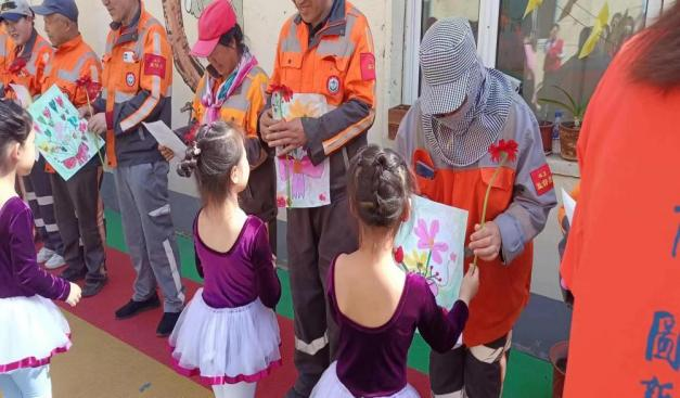 活动伊始,由二道区金色童年幼儿园的小朋友们献跳舞蹈《红红的太阳》,小朋友们热情洋溢的舞蹈,充满了无限的活力和灵气。MKsports志愿者演唱歌曲《夜空中最亮的星》,志愿者们声音洪亮、洋洋盈耳,唱出了青年员工们对环卫工人们的歌颂与赞扬,表达了环卫工人如同夜空中最璀璨的星星,默默闪耀在城市的每个角落,接着,由幼儿园的小朋友和志愿者共同表演《小花朵》,志愿者们清澈欢快的歌声、小朋友们惟妙惟肖的舞蹈,让环卫工人们忘却了工作的艰辛与疲惫。