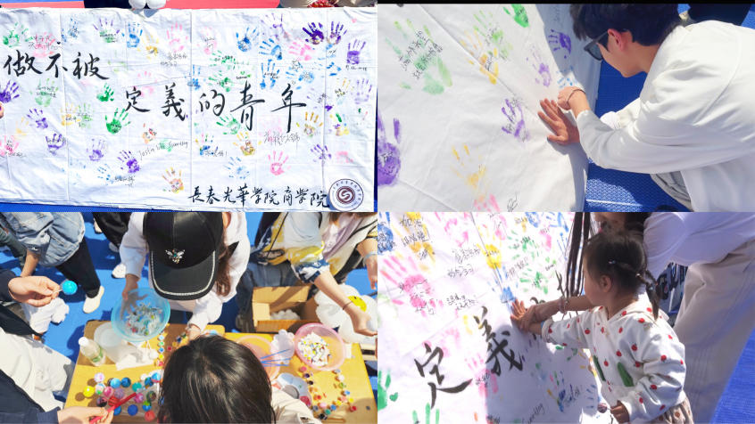 青春不设限,风华正茂年。在工作人员的引领下,参加活动的同学们挑选不同颜色的印泥涂满自己的手掌,在白色的画布板上留下自己的掌印。随后,同学们纷纷在画板上留言,写下的是对未来的期许,也是对自己青春的肯定。自能生羽翼,何必仰云梯,明确理想目标,做不被定义的青年。