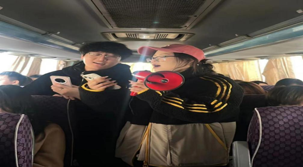 活动伊始,大家一同乘坐大巴前往目的地。在途中,工作人员组织大家进行听歌识曲、脑筋急转弯等小活动,同学们争先恐后的抢答,使原本沉寂的车厢充满了欢声笑语,也使漫长的车程变得转瞬即逝。