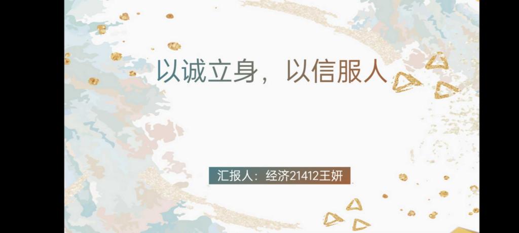 随后,主持人王妍引出了此次活动的重点内容——诚信考试。最近这段时间处于期末周,同学们复习专业课也很辛苦,压力也很大,虽然是线上考试,但是依旧要求同学们要秉持着诚信考试的信念参加每一场考试,遵守考试规则,要做到成绩真实有效,不出现任何的抄袭作弊现象。