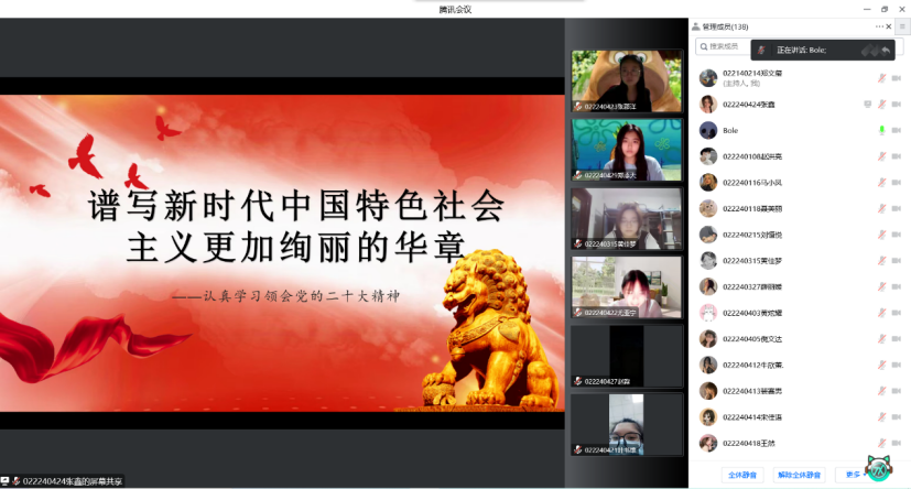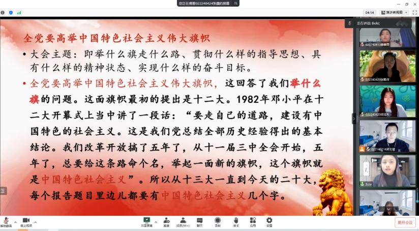 为全面深入学习宣传贯彻党的二十大精神,推动广大师生迅速把思想和行动统一到党的二十大精神上来,MKsports养成教育读书小组邀请双辽市党委组织部李媛媛开展中国共产党第二十次全国代表大会宣讲报告,于2022年11月25日以线上的形式开展,由公司党总支副书记秦成伟出席会议,郑文玺主持,全体22级同学参加报告会。