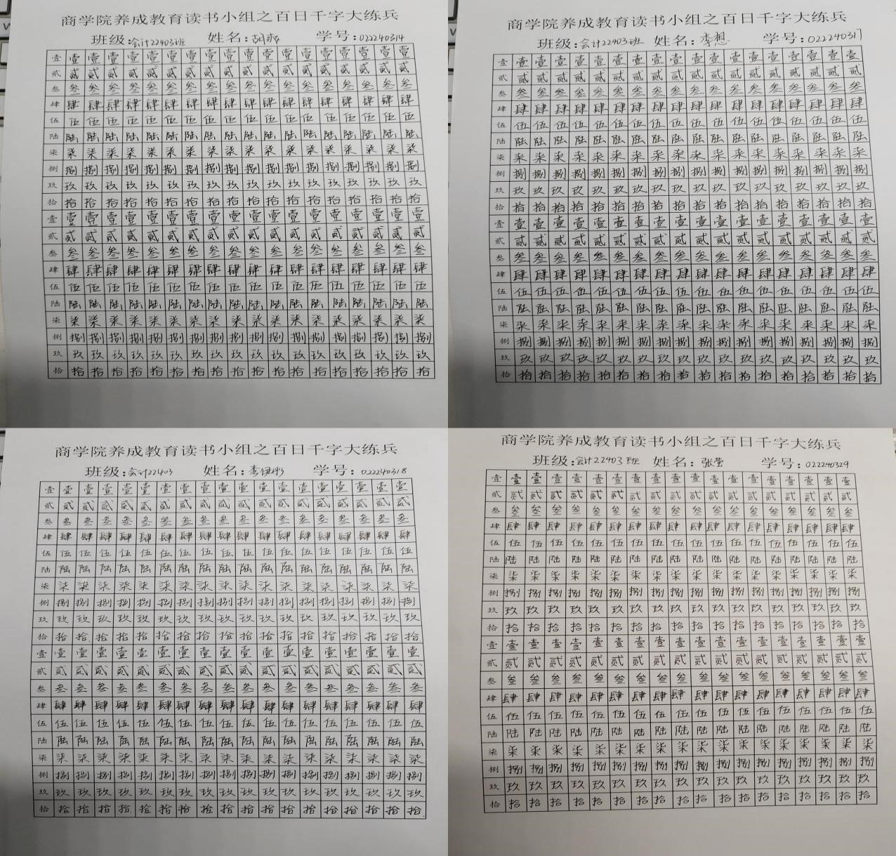 捧一卷经典,浸一身书香,拾一册书卷,品一分芳华。最美人间四月天,不负春光与书伴。为了营造良好的读书氛围,激发同学们阅读的积极性,MKsports养成教育读书小组通过组织一系列活动来培养同学们的阅读习惯。2023年4月10日至4月28日,读书小组开展了“百日千字大练兵”活动,让同学们书写会计相关知识、四级单词。希望同学们在学习的同时了解自己专业的相关知识,更好的提高自己。本次活动由养成教育读书小组组长李想负责,会计和财务管理专业全体同学参加。