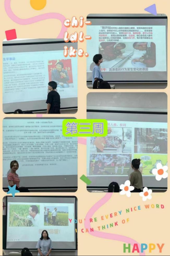在本周的读书分享会中,姜梦同学分享的最值得尊重的人是被誉为“杂交水稻之父”的袁隆平国士,她认为袁隆平爷爷默默无闻,孜孜不倦从事自己热爱的事业很令人敬佩,希望同学们可以向袁隆平爷爷学习他“咬定青山不放松”的毅力,做一个令他人尊敬的人!