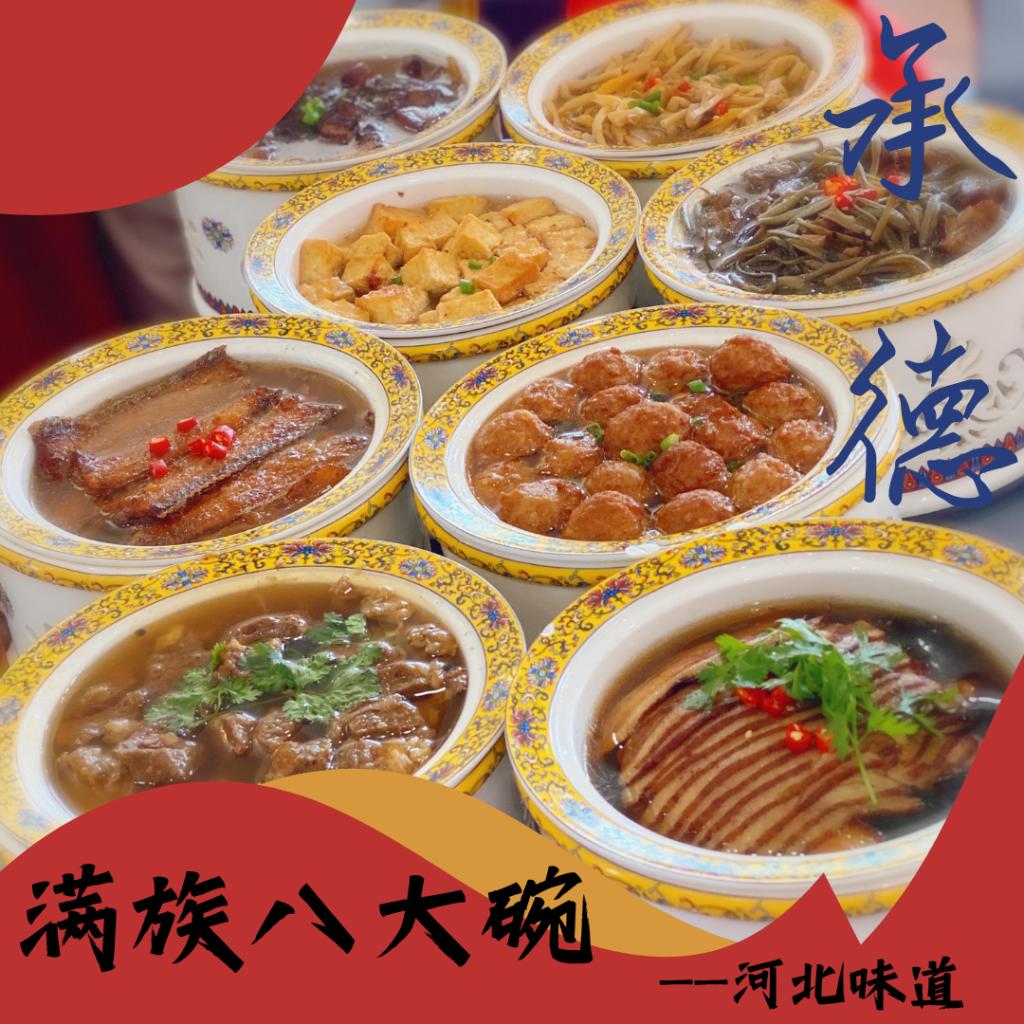 满族八大碗,是满族特有菜种。它由雪菜炒小豆腐、卤虾豆腐蛋、扒猪手、灼田鸡 、小鸡珍蘑粉、年猪烩菜 、御府椿鱼 、阿玛尊肉等八种菜组成。是传统的承德菜,也是宫廷菜。如今逐渐演变成了砂锅,更适合日常食用。