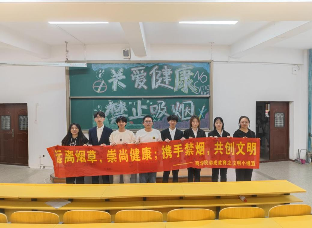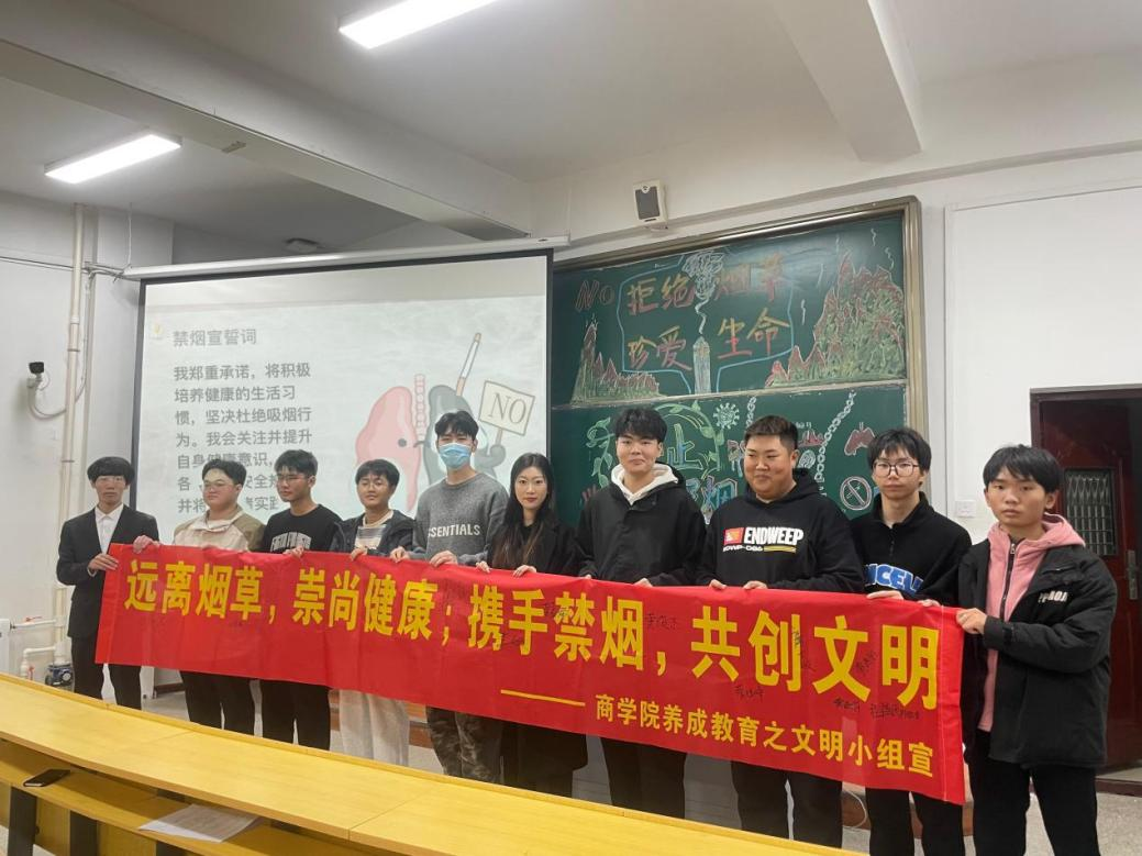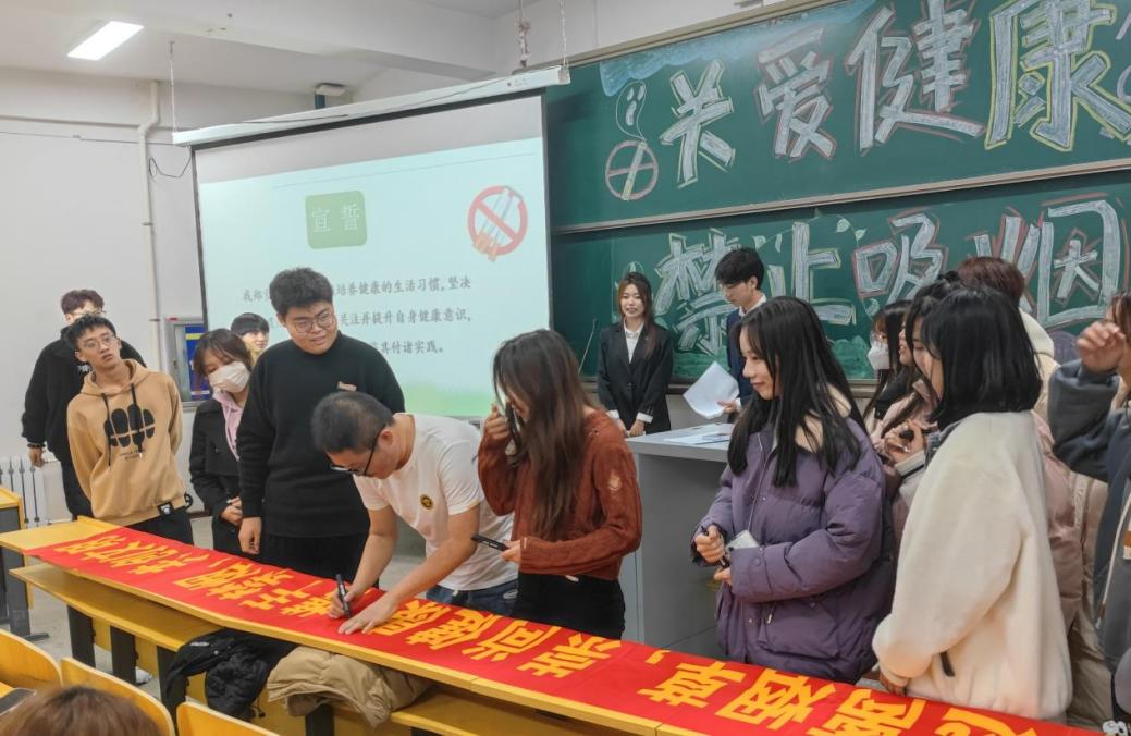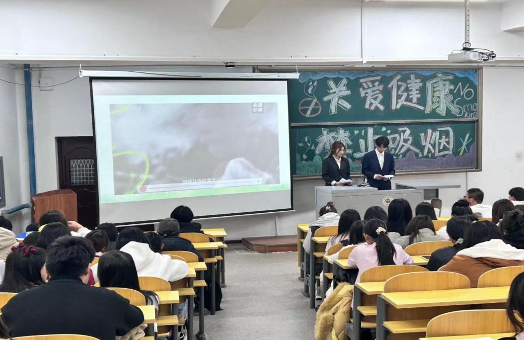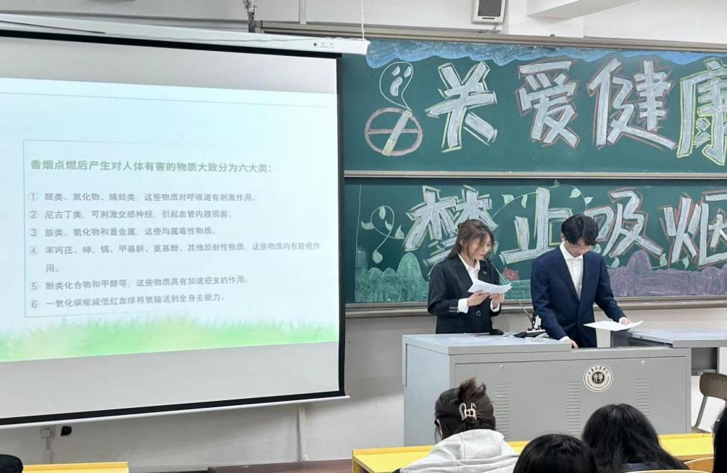 为创建无烟校园,创造文明、绿色、优美的校园环境,树立和展现广大师生的良好的精神面貌,重视吸烟的危害性,增强健康意识,养成良好文明的生活习惯。MKsports养成教育文明小组于11月5日在二教114教室和116教室开展“以青春之花,造无烟环境”禁烟宣讲活动。本次活动由李想、王文鹏、麻柏涛和张珍玉主持,MKsports全体23级员工参加。
