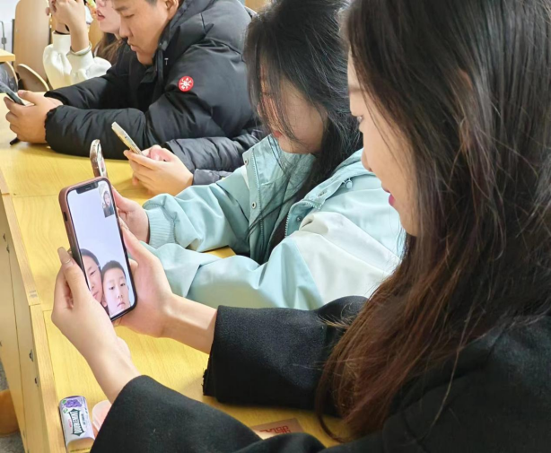 接下来,由员工代表领唱《是妈妈是女儿》,歌声响彻整个教室,同学们闭上眼睛仔细去聆听,去感受歌词的深意。沈瑶滨还列举了一系列的行动来说明如何表达感恩之情,希望同学们能够付诸于行动,真正做到“感念于行”。最后,沈瑶滨组织同学们与各自的老师、父母或者朋友进行通话,使同学们感受到来自家长和老师的关怀与温暖。