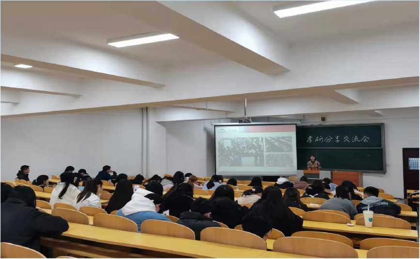 学姐根据她丰富的有关考研的经历,从考研的价值、考研的形势、考研的常识、考研的技巧四个环节详细的讲解了考研过程中应注意的问题。随后就为什么要考研及如何考研等问题做了详细讲解并就考研信心的树立、考研计划、备考心 态的调整、作息时间安排等方面进行了分享。她指出,复习专业课要根据考试大 纲要求进行梳理复习;英语方面,重在练习,多动脑,勤动手;政治方面,大纲很重要,但也要注意答题的条理和技巧。他们用切身的体会告诉我们,考研是辛苦的,是寂寞的,是“两耳不闻窗外事,一心只读圣贤书”,但也一定会苦尽甘来的。
