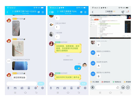 各专业系和教研室多次开展在线教学经验交流活动,老师们主动分享线上授课心得,介绍哪些平台好用、在线教学遇到了哪些问题等,互相帮助,共同提高线上教学效果。老师们纷纷表示疫情过后会将在线教学中的好经验、好做法真正融入到课堂中,为打造“金课”奠定基础,为不断提升公司产品质量、培养应用型人才做出新的更大贡献。
