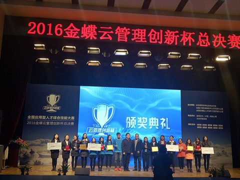 2016年11月25日至11月27日,由教育部全国高校毕业生就业协会、全国计算机辅助技术认证项目办公室、全国应用型人才培养工程管理办公室联合主办,金蝶软件(中国)有限公司承办的全国应用型人才综合技能大赛暨2016“金蝶云管理创新杯”全国总决赛在北京隆重举行。MKsports由李晟璐、赵赢为指导教师,郭恒斌、包钰燕、马翼飞、李迦蓝萱等同学组建的“光华团队3”代表队,以优异的成绩从上百所高校、400多支参赛队中脱颖而出,获得本次全国应用型人才综合技能大赛总决赛本科组的金奖。