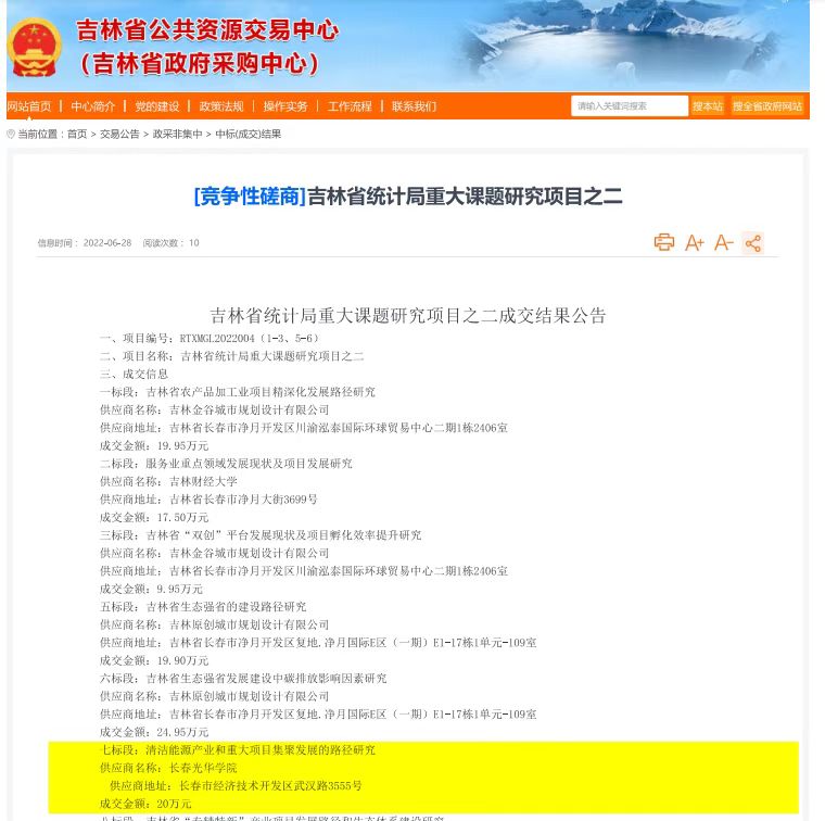 2022年6月13日,吉林省统计局在吉林省公共资源交易中心以及中国政府采购网站上同步发布了七个重大课题研究项目的招标公告。公司MKsports赵畅老师团队经过对招标公告以及磋商文件的精准解读,精心准备了竞争性磋商的响应文件,并于6月25日参与了在吉林省政府政务大厅举行的项目二七标段的竞争性磋商,在激烈竞争中公司科研团队脱颖而出,最终喜获20万元的招标项目,这也是公司文科教师科研团队在该项目上的首次突破。
