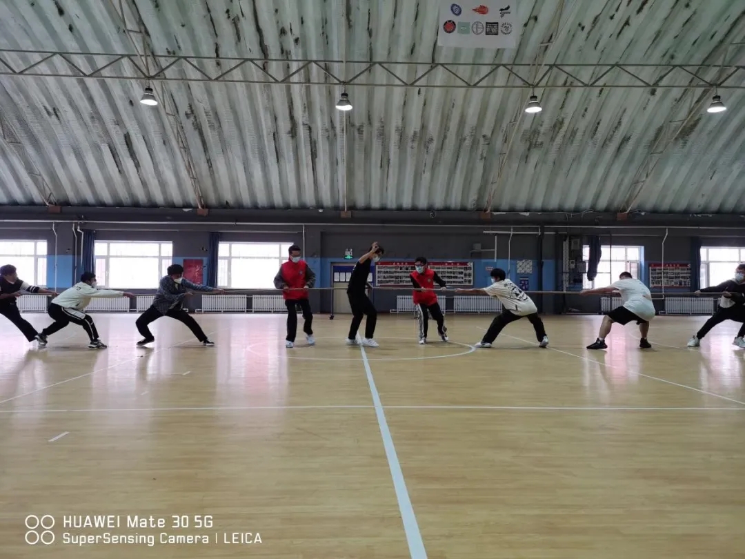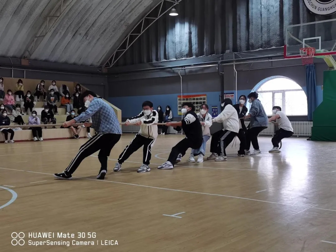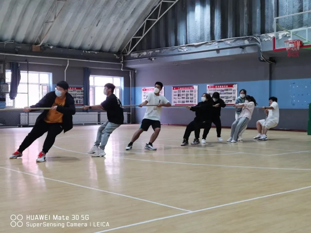 拔河的必备要素:“一二一”,一根粗麻绳,以及战意腾腾的他们!比赛还没开始,双方就暗暗较上了劲,都不肯让对方抢占了先机。一声令下,强行压抑的平静瞬间被打破,磨手的麻绳,推搡的队友,震耳的呼声都被抛在脑后,只有身体随着口号一下一下发着力,感受着个人力量的渺小,只有大家齐心协力,才能获得胜利。一根根长长的绳索,连接起你我的团结和友爱。拔河比赛现场气氛热烈而高涨,助威声此起彼伏,跃动的倩影形成了一道美丽的风景线,衬出了亮丽的青春。