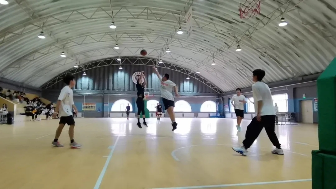 十月金秋运动季,拼搏运动正当时。新生与老生两支球队随着裁判的一声哨响比赛正式开始,新生篮球队通过积极地拼抢,打防守反击,并利用个人能力突破,不断取分。另一队也奋勇拼搏,利用娴熟的球技、默契的配合和精准的投篮,在比分上取得领先。球员们奋力拼搏,进攻、防守、抢断、投篮,一道道身影在篮球场上来回驰骋。秉承着友谊第一,比赛第二的初衷,两队球员在比赛中相互帮助、鼓励,经过40多分钟鏖战,老生球队最终获得胜利。比赛过程精彩不断,赢得了场边观众的阵阵掌声和欢呼。