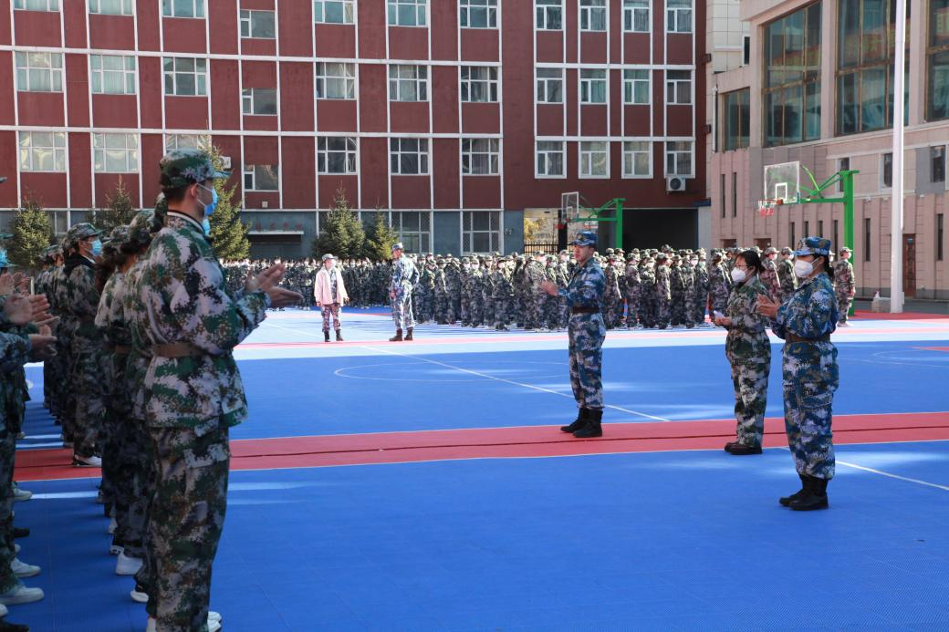 大会最后,王微老师预祝同学们通过军训收获军事技能、军事知识,并就此培养良好的精神面貌和坚韧的意志品质,都能成为有抱负、有担当、有毅力、强体魄的青年才俊!