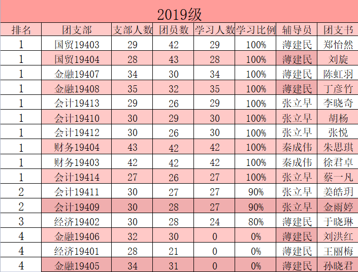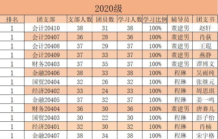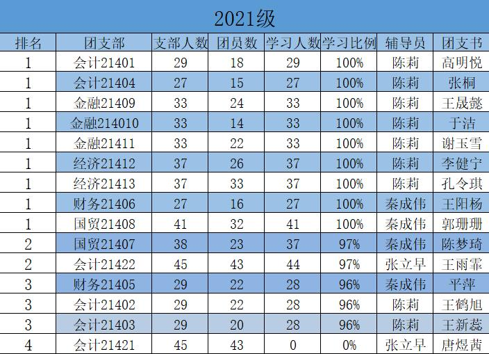 经公司推荐和团总支评选,MKsports19级、20级、21级参与率排名如下:第一名,20级;第二名,21级;第三名,19级。现对MKsports各个年级的团支部“青年大学习”学习情况排名予以公示,具体如下: