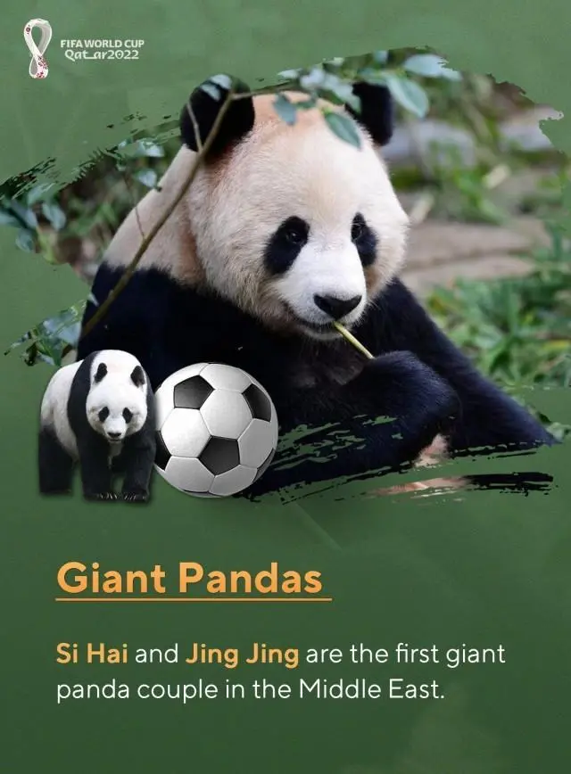 四海和京京是中东地区迎来的首对大熊猫,为预祝世界杯成功举办,当地时间10月19日,中国大熊猫“四海”和“京京”乘专机从中国四川抵达卡塔尔首都多哈。出于对中国大熊猫的喜爱,卡塔尔将“京京”和“四海”以阿拉伯语分别命名为“苏海尔”和“索拉雅”。在阿拉伯传统文化中,“苏海尔”和“索拉雅”是天空中的两颗星,代表着吉祥、崇高和价值无限。