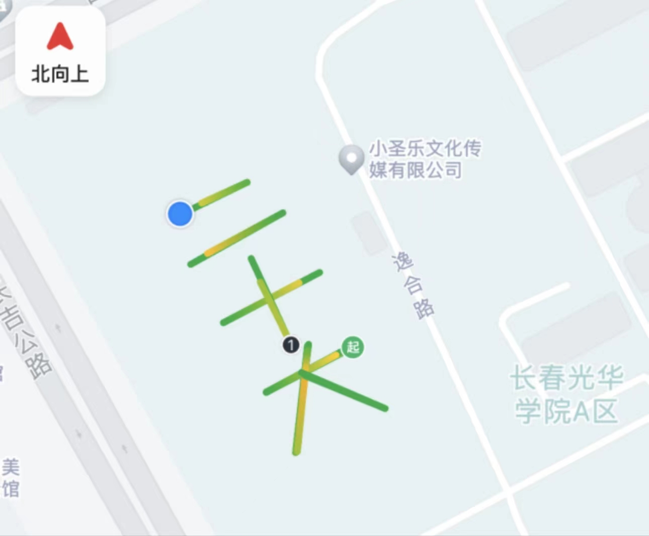 经过短暂的跑前热身后,本次活动正式拉开帷幕。活动负责人安排各个女同学分别站在“二”“十”“大”三个字的主要端点处,由男同学们沿着线条在其之间来回奔跑,应用keep、高德等软件记录奔跑形成的“二十大”字样。活动过程中,同学们积极参加,共同完成“二十大”字样,每个人都将红色国旗紧紧握在手中,尽情奔跑着、挥舞着,脸上洋溢着笑容,用心向“二十大”敬礼,庆贺“二十大”的胜利召开。