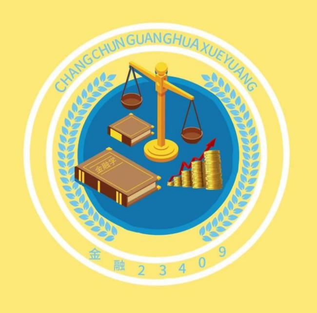 设计理念:班徽大致整体是由正方形和圆形构成,象征着无规矩不成方圆。两侧由麦穗环绕,麦穗象征着富有,天平象征着公平,与金融专业息息相关。左侧的《金融学》书籍代表着我们班同学积极的学习态度,右侧的金币上方的箭头呈上升趋势,代表着金融九班的同学在学习上将扶摇直上。