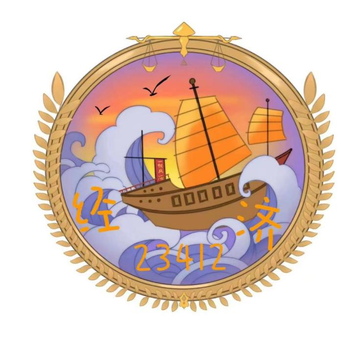 设计理念:中间以商船为设计元素,表示经济互通、共同发展,而商船行驶在汹涌的海上,体现不惧困难的精神,上面以秤为标志体现经济元素,也意蕴着心无偏私,公平如秤。橄榄枝包围整个班徽,代表着共同发展经济,以友好相称,真正做到经邦济世。