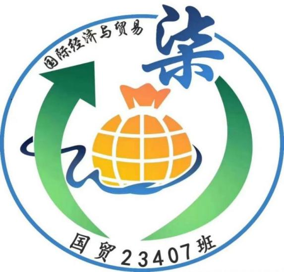 设计理念:国贸23407班的班徽主要由象征着全球贸易的钱袋和箭头组成,象征着全球经济的不断发展,国贸七班将继续深入学习国贸专业知识。