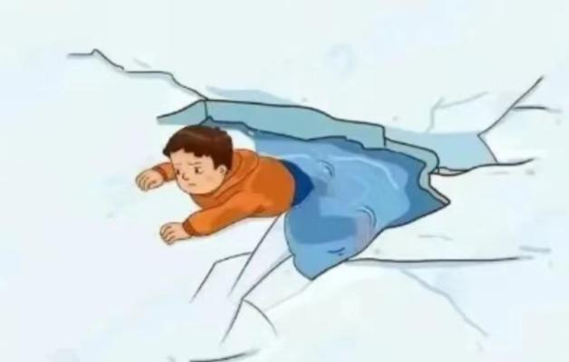 3. 当裂痕过大,冰面即将坍塌时,应当保持四肢展开,趴下或躺下,同时保持在原地不动大声呼救。